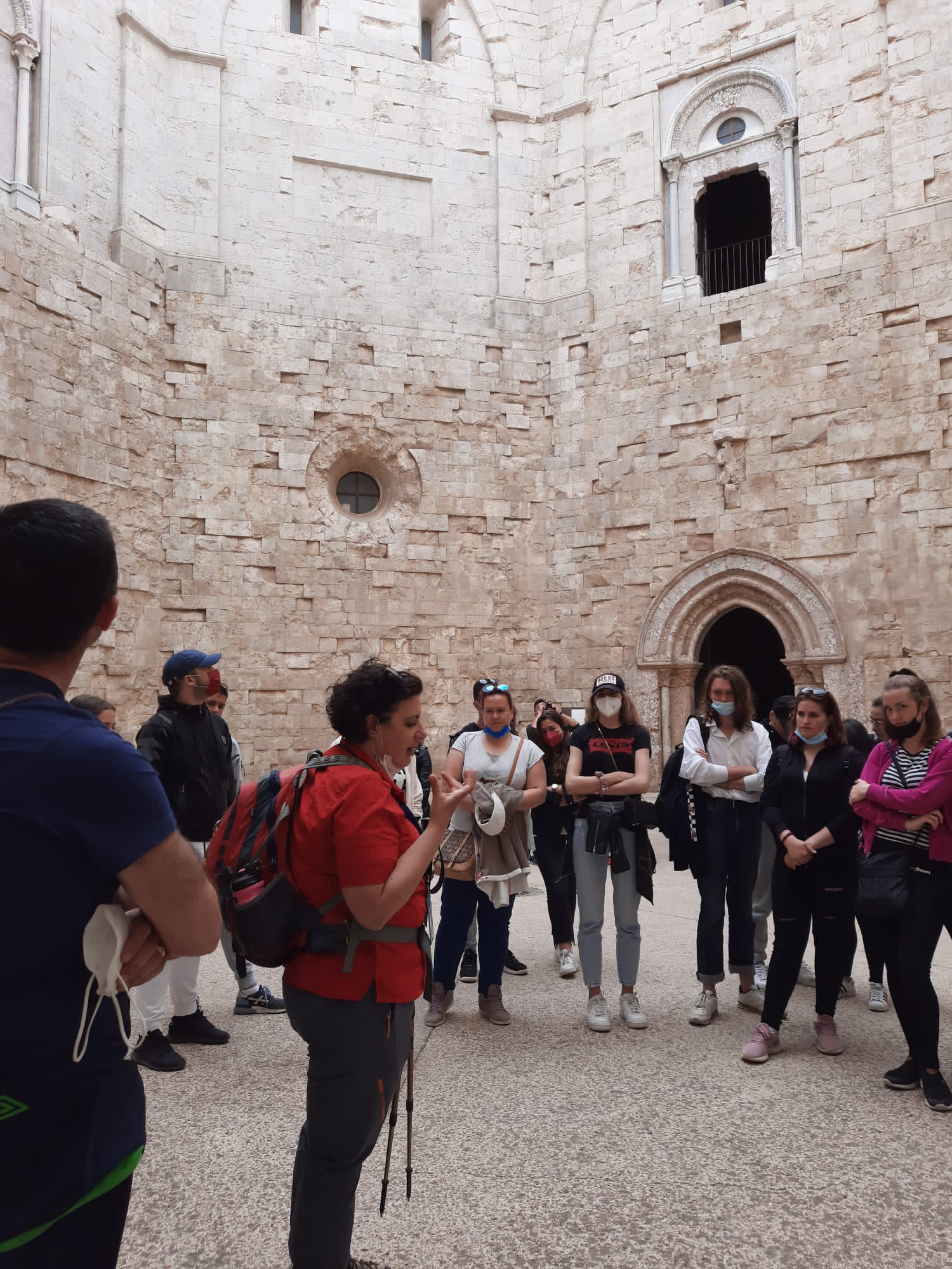 La coordinatrice del progetto prof.ssa Marina Caterino ha organizzato un tour speciale per mostrare il patrimonio culturale e il paesaggio incontaminato della Puglia. Sentiti ringraziamenti all’eccellente guida, Rossella Gendarmi, che ha condotto la visita in lingua inglese all’interno del Castel del Monte e ha accompagnato il gruppo nel bosco, illustrando la meraviglia della natura, gli animali, i fiori, le orchidee, le erbe spontanee usate nella cucina pugliese. Entusiasti i partecipanti, per l’attività di trekking all’interno del Parco Nazionale, con una guida altamente qualificata e cordiale come Rossella. Il progetto Erasmus e il Parco Nazionale dell’Alta Murgia, insieme, per scoprire e preservare il nostro patrimonio culturale e ambientale!