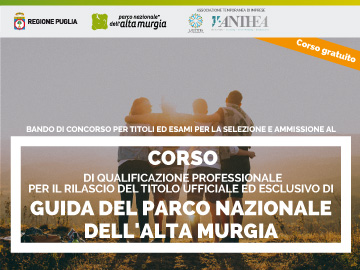 Il Parco Nazionale dell’Alta Murgia, d’intesa con l’Assessorato alla Formazione Professionale della Regione Puglia, organizza un corso di qualificazione professionale per il rilascio del titolo ufficiale ed esclusivo di “Guida del Parco Nazionale dell’Alta Murgia”.